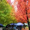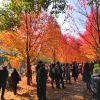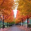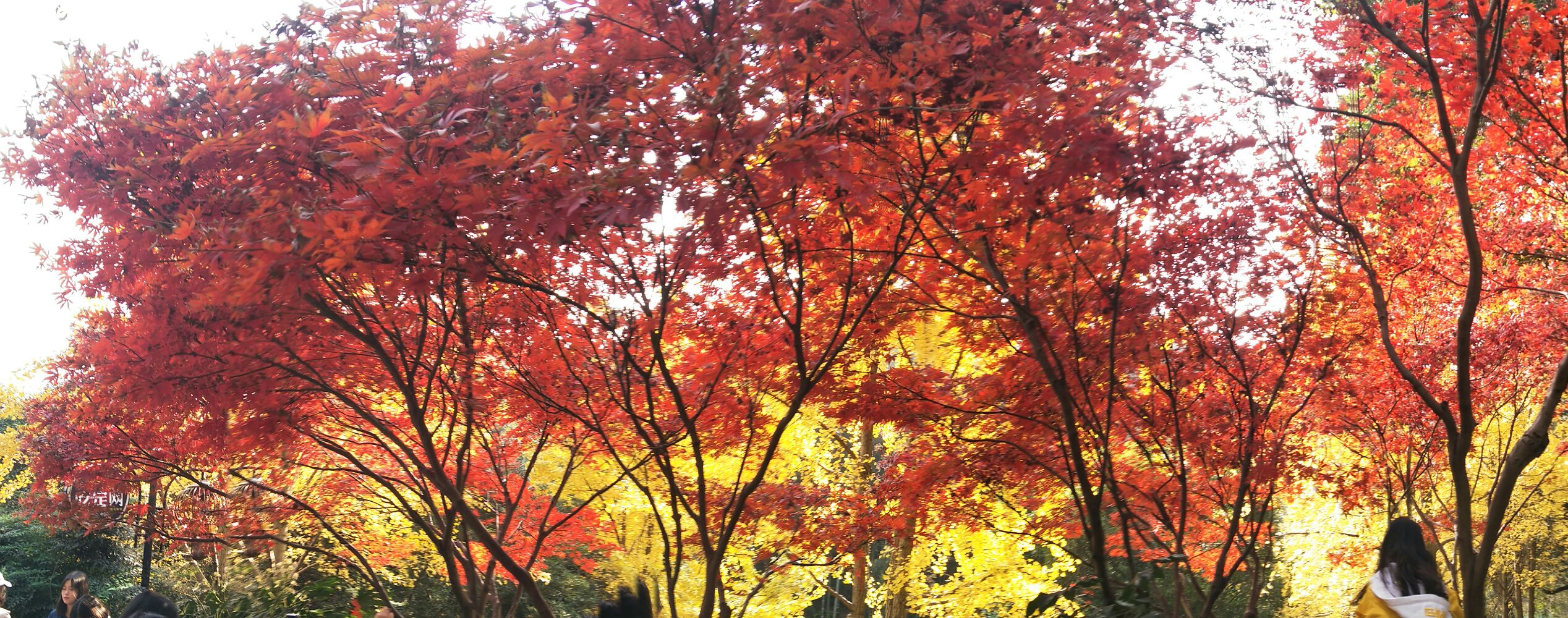 岳麓山上共有枫树几万株,其中大部分是枫香,另有北美红枫、挪威枫、 鸡爪枫等上百株进口枫树。从爱晚亭拾级而上,经放鹤亭、半山亭、麓山寺、蔡锷墓、黄兴墓、观光长廊至云麓宫,沿途集中分布着枫树。此外,这一路也栽有壳斗科的白栎、麻栎,樟科假死柴,银杏等秋天着色树种。一眼望去,有橙红,有桔红,有黄色,层次感极强。目前,该景区枫叶染红率在30[%]左右,其中爱晚亭、白鹤泉至麓山寺枫叶树的染红率比较高,是比较理想的观赏地点。
