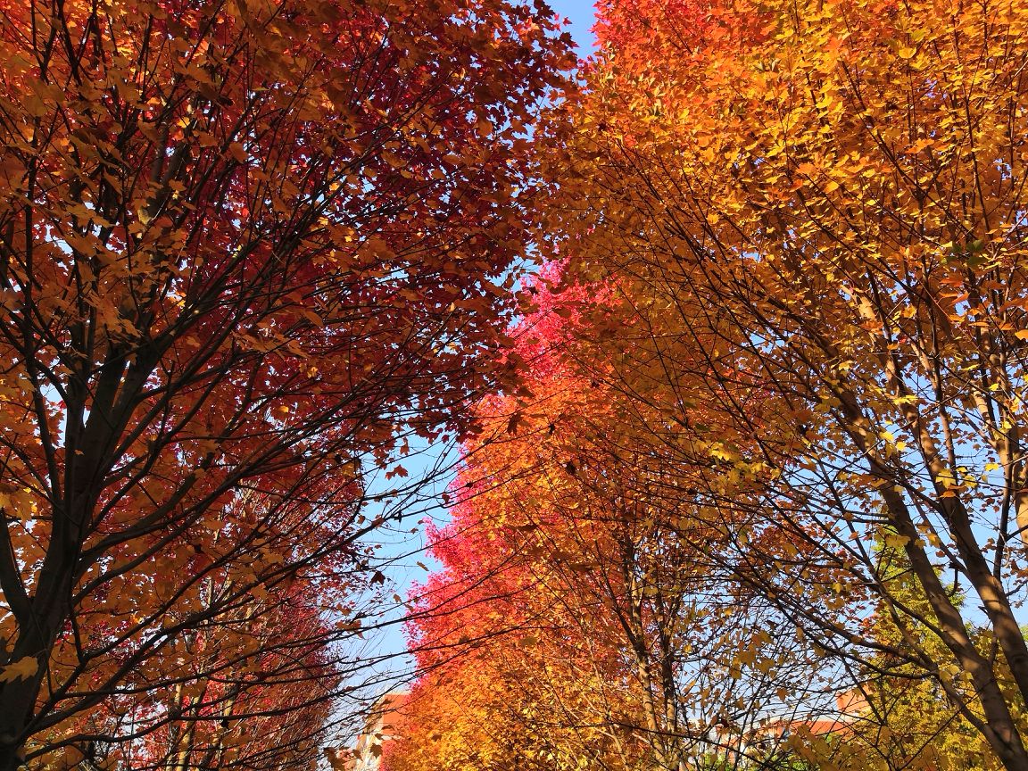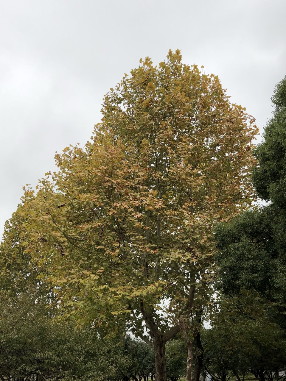 “枫叶红了一些,但大部分还是黄色。”南郊公园绿化科有关负责人介绍,在公园内靠湘江边的一侧栽种有大片的枫香林,整个公园有100多株枫香。