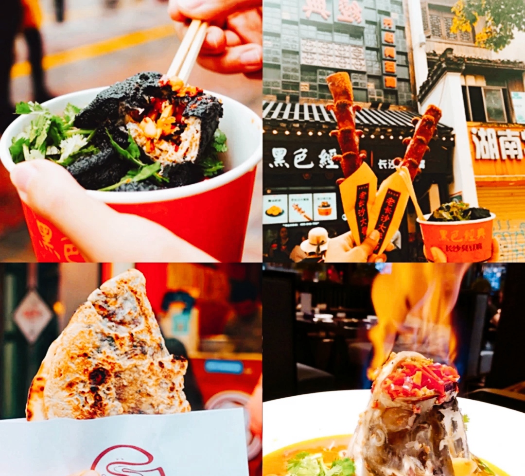 在太平街黑色经典牌子的臭豆腐茶颜悦色(最好喝的是幽兰拿铁)邵福记牌子的梅菜扣肉饼