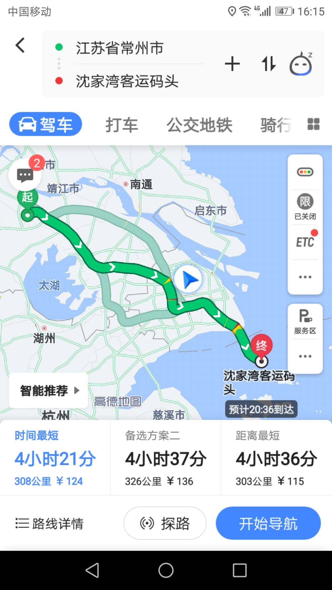 2. 自驾方案。从常州市区,自驾前往沈家湾码头,路程308公里,车程4.5小时。