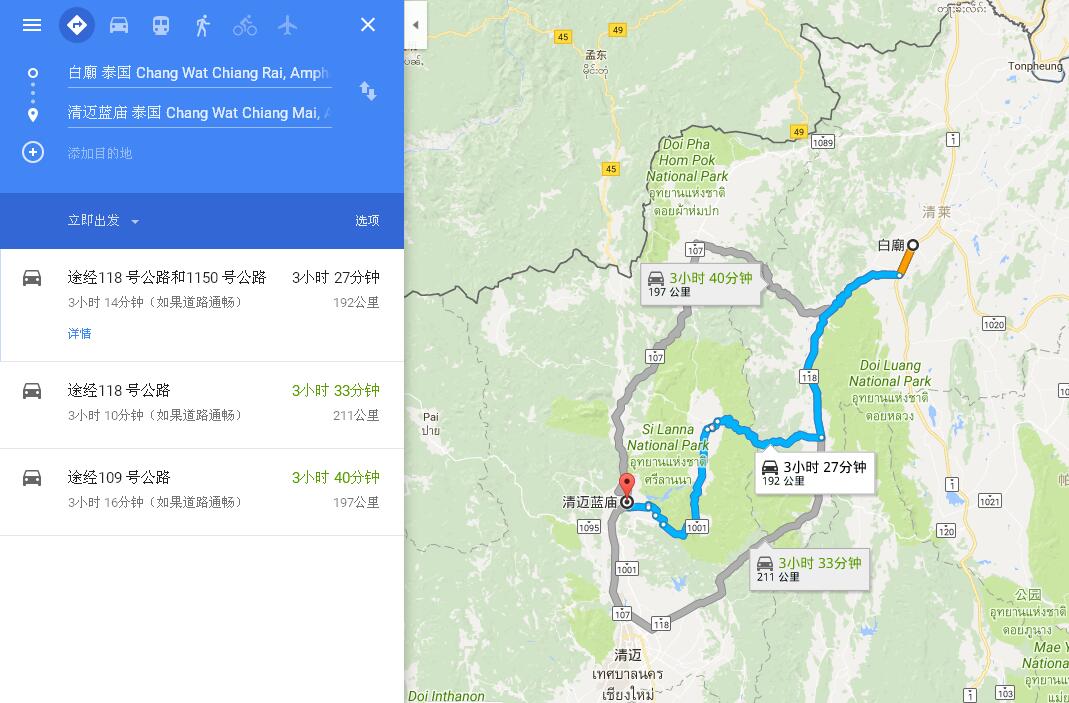蓝庙是清迈的,白庙是清莱的,两者相距很远,没有小三轮过去,我截了一个图给你