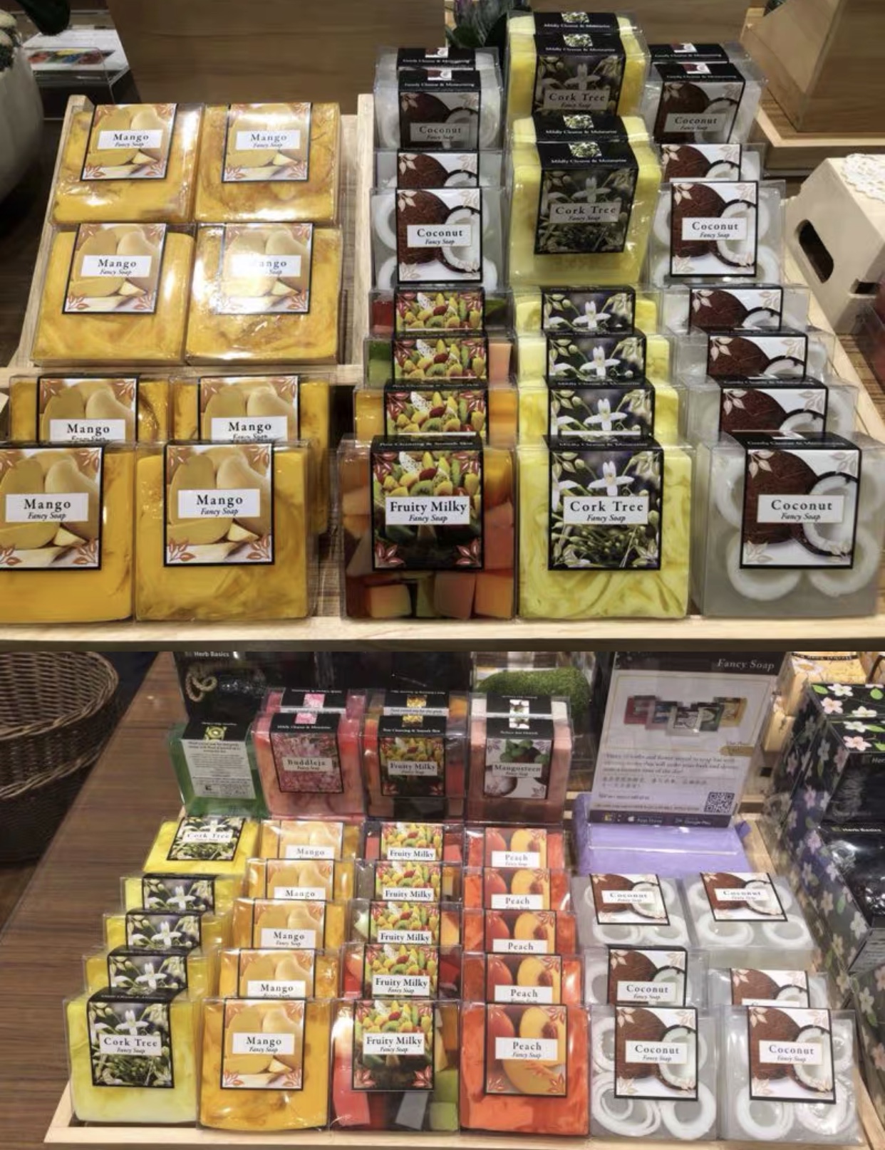 1. Herb Basic的精油皂。99泰铢/块,式样/口味都很多,送礼自用两相宜。据说是清迈当地品牌,去泰国别的地方买不到,所以很值得入手。
