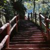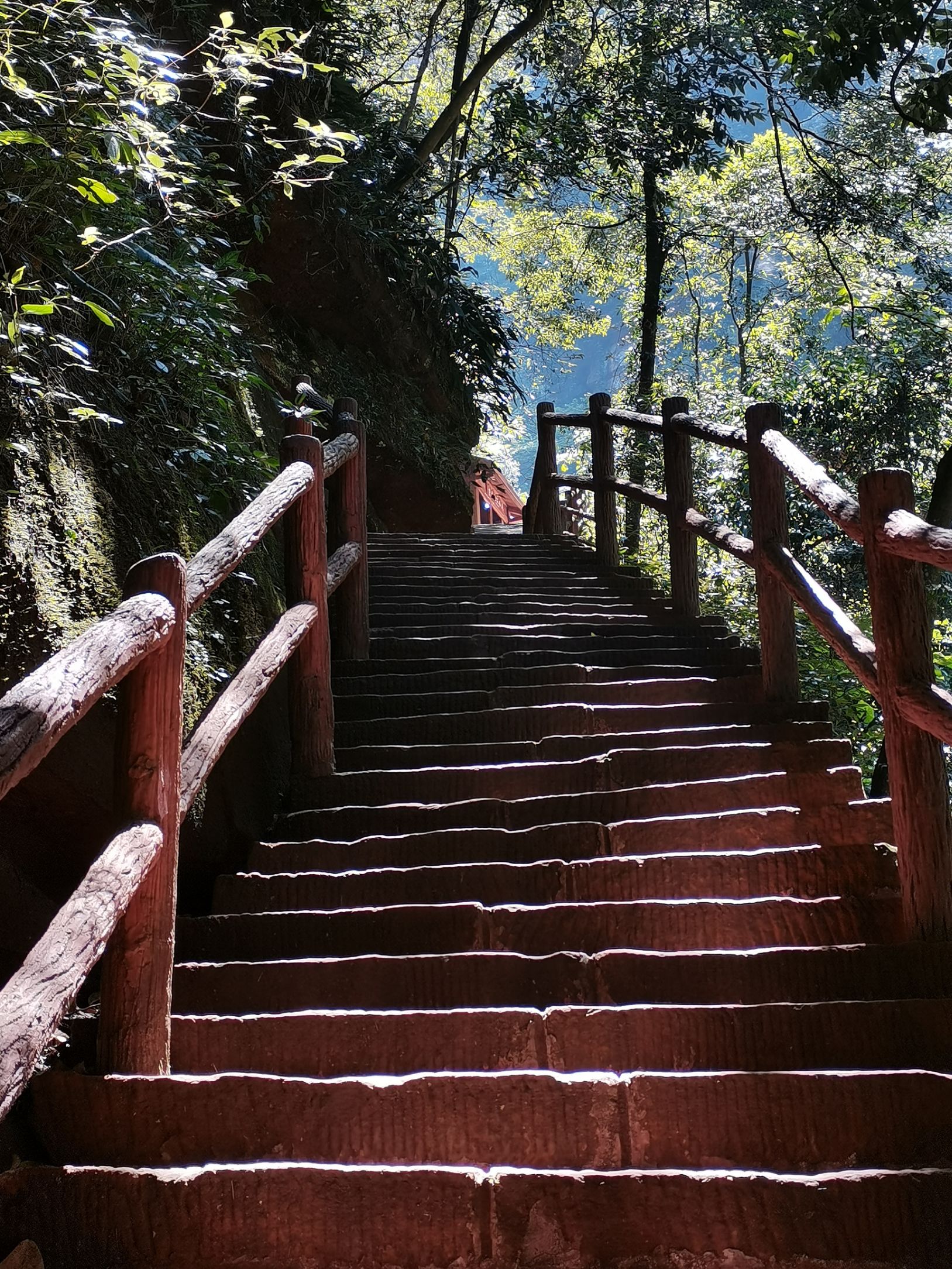 要上山的,是有梯级的山路,但山路不是很难走,可以走走停停,路上有很多树木,一路都很阴凉,有休息的凳子,慢慢的走一个景点大概需走半个小时吧。