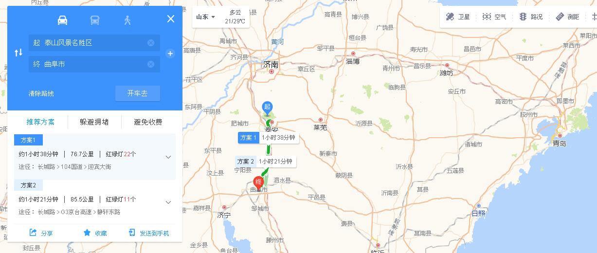 楼主,请看下面的地图,地图中左上角是济南,最右侧能找到青岛,起点那个地方是泰山,终点那个地方是青岛,所以建议大连到济南,然后泰山、曲阜、青岛,青岛到烟台或威海都可以,然后再这两个地方坐船回大连,或者就好似青岛到济南,济南到大连,这样就是饶,如果晕船的话就只能这样解决了。