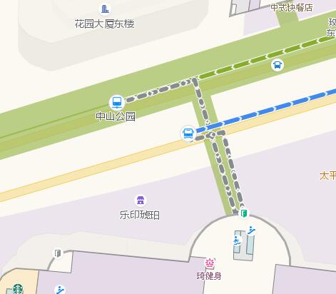 下车步行 122米 至 中山公园(长宁路)(约2分钟),路线详见图片