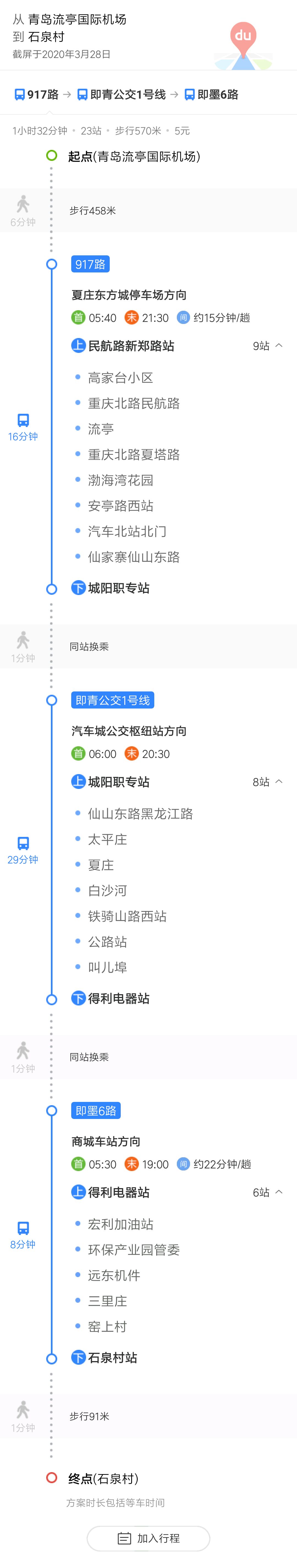 因疫情,青岛机场大巴即墨线暂停运营,目前只能先从机场坐公交车到城阳,再从城阳转车到即墨,然后再坐即墨的公交车到石泉村,供参考。