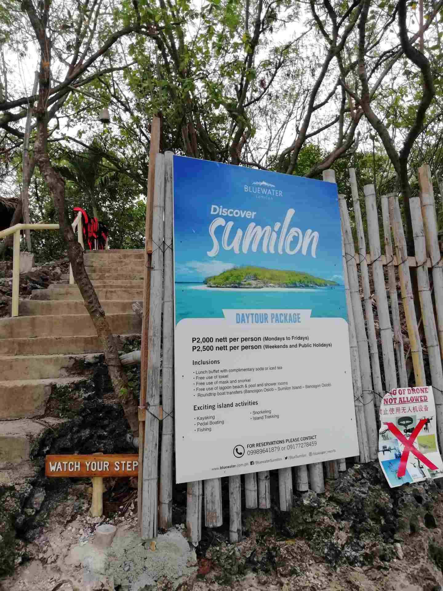 苏米龙岛上只有一家酒店,很贵,个人感觉这个岛景色、海水一般般。岛上与奥斯洛布码头很近,住宿联系住在奥斯洛布附近。我18年10月5日去的,在海钓度假酒店住了一天,酒店在公路边上,风景优美,大概280元一天,酒店可订苏米龙岛游玩,2个人大概1700比索,门票价格100比索。