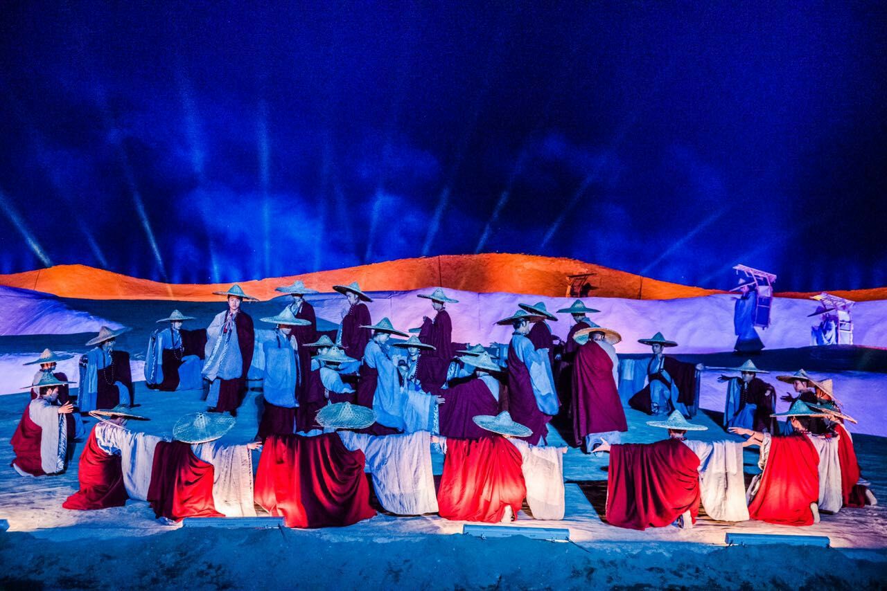 没来敦煌就听到过敦煌盛典这个演出,7月初的时候刚去看的,先放几张图吧!当时看还挺震撼的,我看歌舞剧也不多,看完敦煌盛典以后真的彻底爱上了歌舞剧,敦煌盛典的剧情跟前面的讲的差不多,是我们国家传统的故事风格,但它们的歌舞演出时真的棒!音乐特别好听,有轻快的,也有洋溢着大漠苍凉的,还有恋人分离以后那种悲伤的音调,舞蹈都是从唐朝还原过来的,像花钿舞,胡旋舞这一类的民族舞蹈,很有特色!而且还是室外实景演出,观看的观众席是可以旋转和前后移动的,特别有意思!