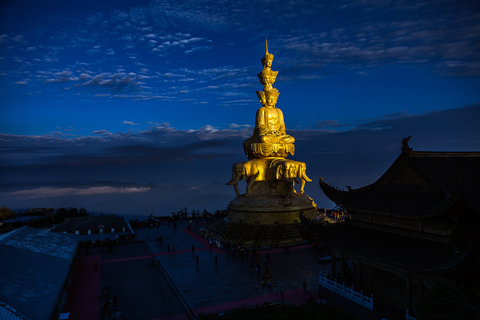 5D游乐山大佛风景区,游玩后到峨眉山报国寺或金顶附近洒店入住。