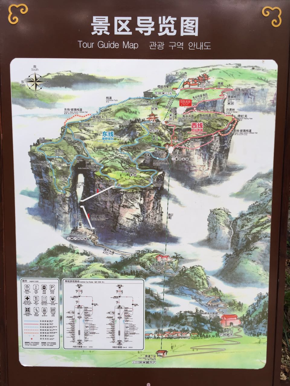 游玩天门山景区一个上午的时间会很紧张。一早7:30分前到游客中心,搭乘第一时间段的缆车上山,游览西线后从中线坐缆车返回,游玩时要紧走,不能停留太久。才可能上午游玩完。