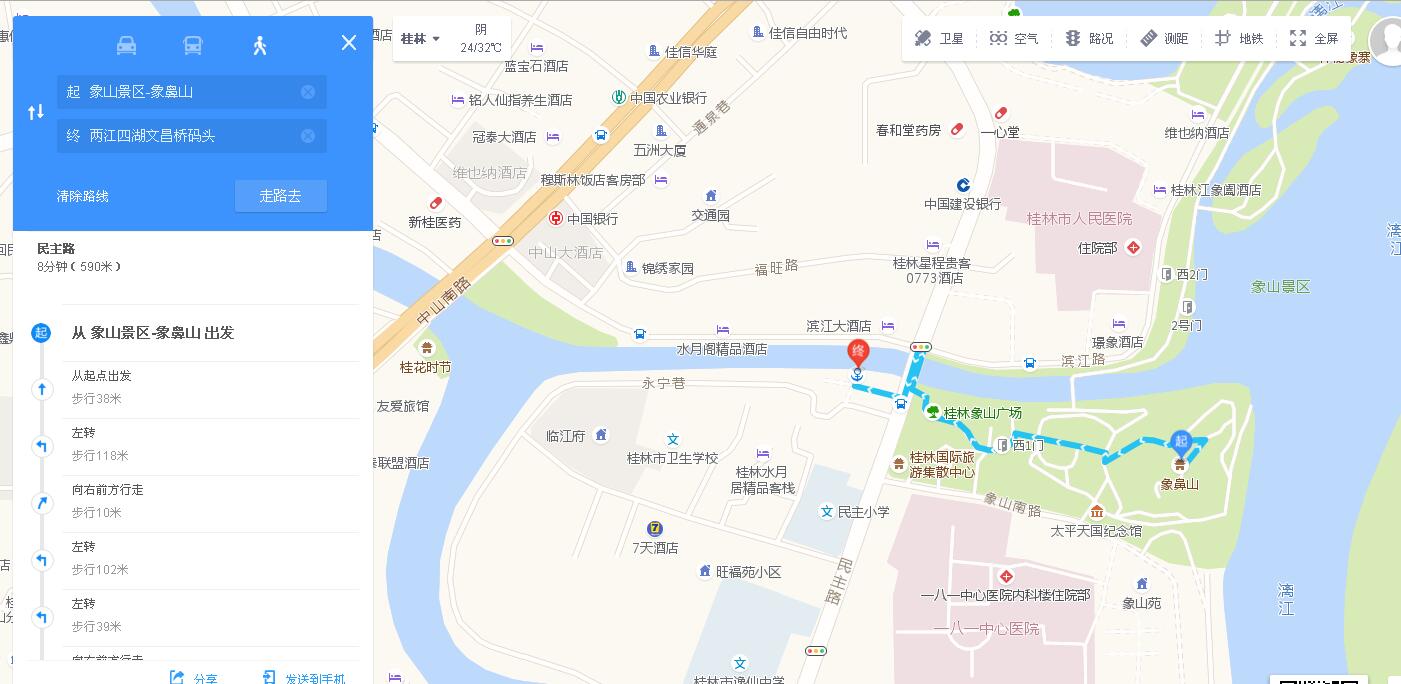 你在文昌桥码头上船就可以了,这里离象鼻山只有几百米,详见图片。