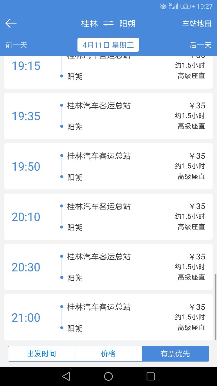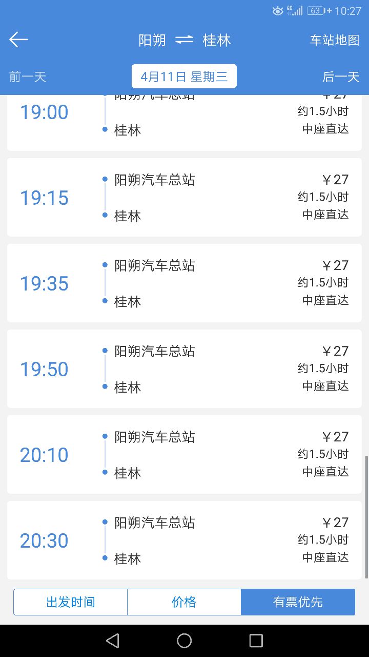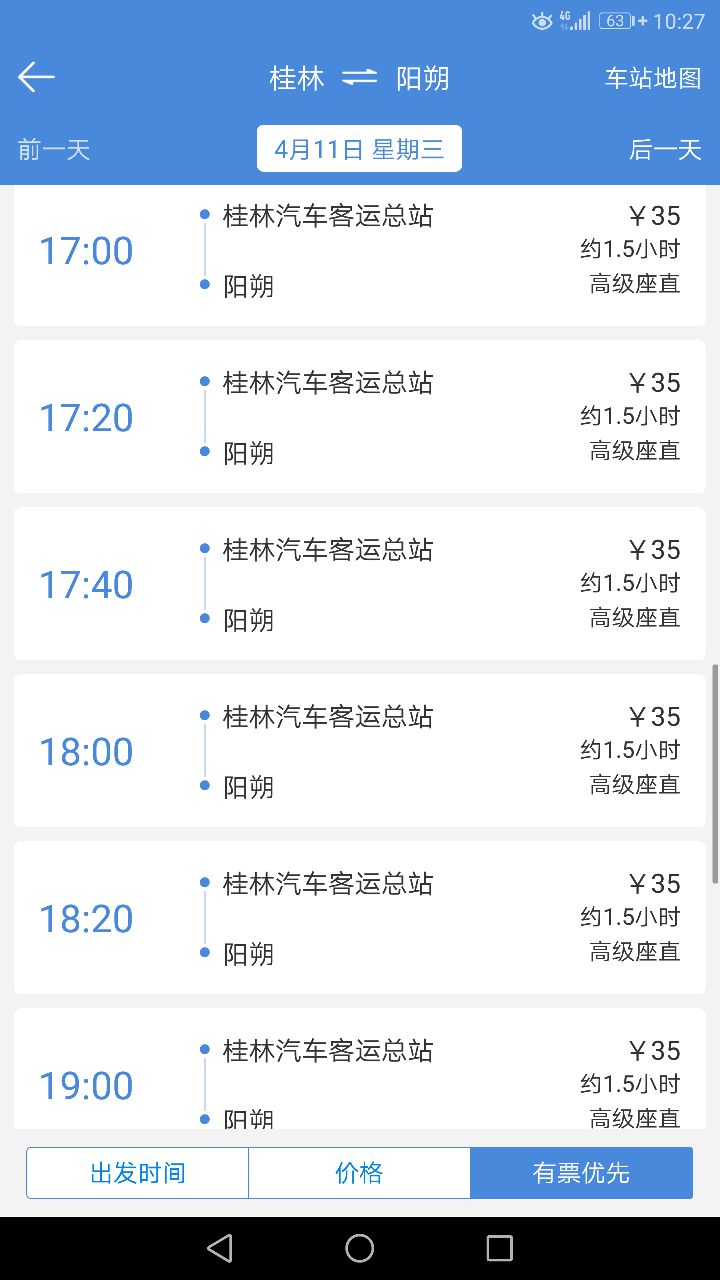 看错你的问题了,你桂林去阳朔,你在桂林长途客运总站离火车站很近,最晚是21点,桂林发车到阳朔,去的价格35 -