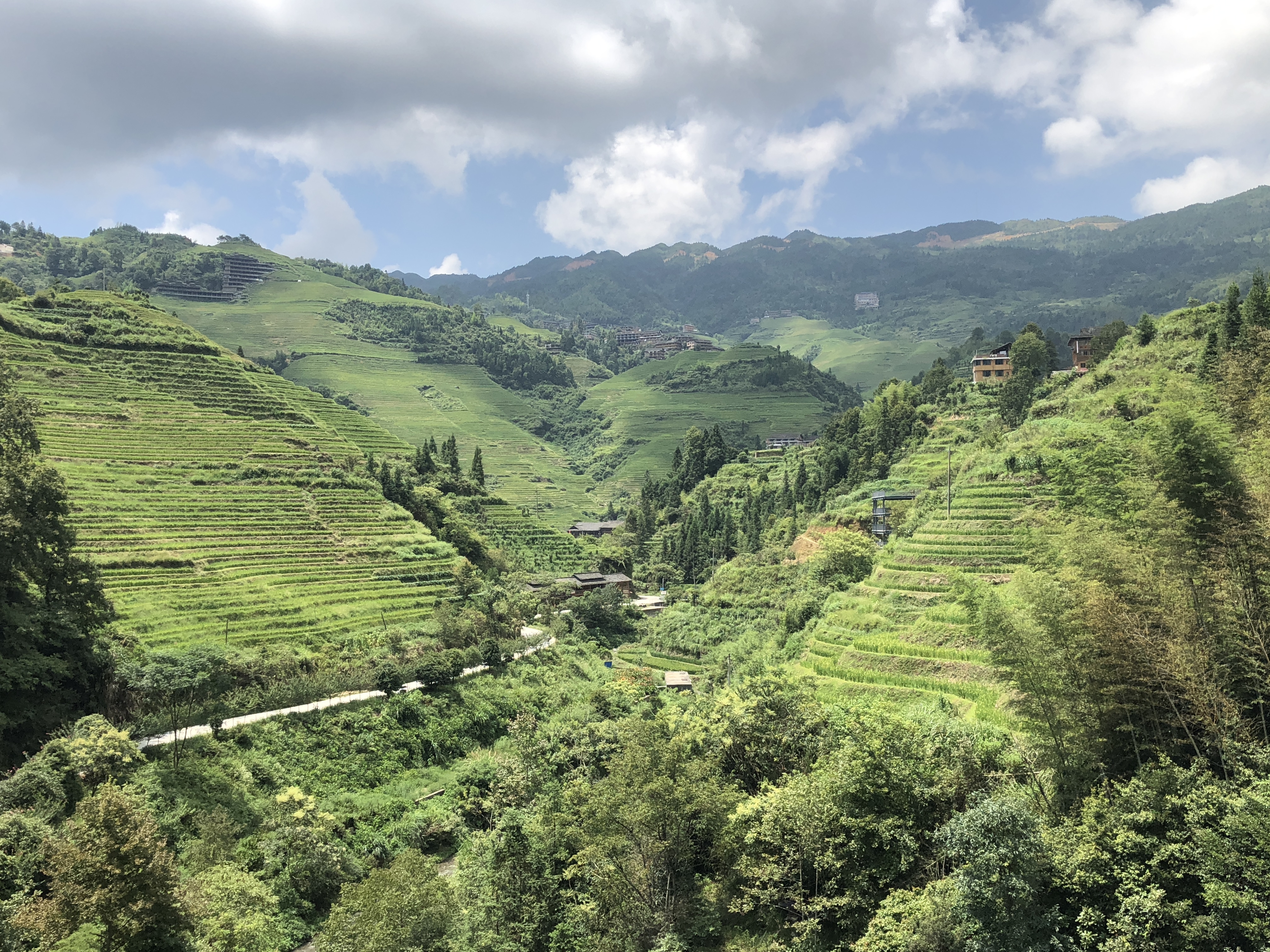 第二天:龙脊梯田一日游,可以报一个当天往返的团,最好是商务车的,因为有孩子,商务车的环境好一点,一般去龙脊梯田都是去金坑梯田的,金坑梯田是有缆车的,缆车上下比较舒服,特别是带小孩。去梯田的沿路还会经过黄洛瑶寨,那里的景色挺不错的。