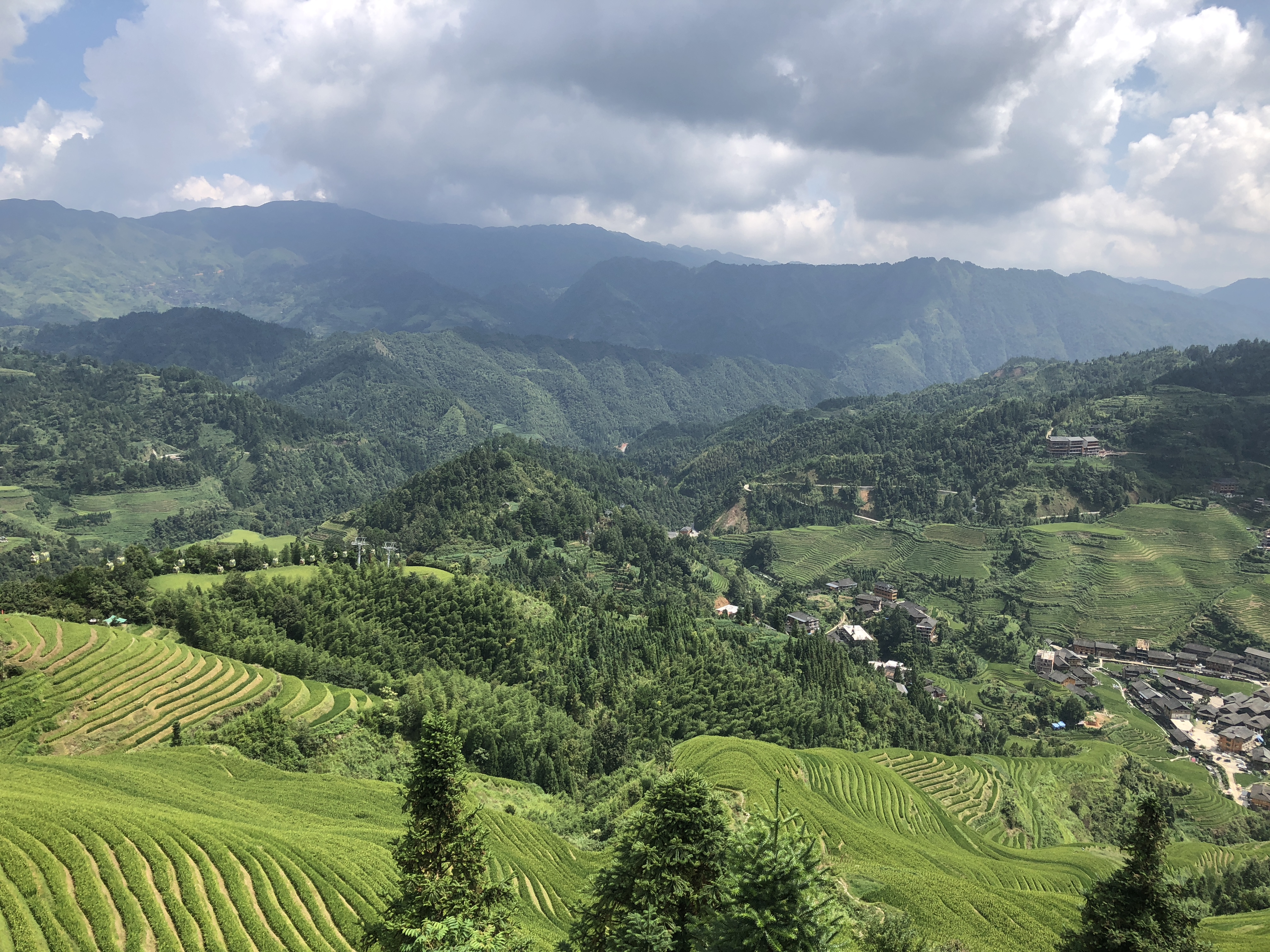 8/27:龙脊梯田一日游,可以预定一个商务车的行程,带孩子比较好,我去的时候是早上7点多就集合了,然后开车去景区,景区里面还有一个景点叫做黄洛瑶寨,是一个长发村,午餐就是在黄洛瑶寨吃的,那里景色还挺好的。吃好午餐后继续去梯田,一般都是去金坑梯田的,带着孩子,肯定是索道上,索道下的,到达山顶后,可以看到很漂亮的梯田景色。游玩好梯田返回桂林市区都要挺晚了。