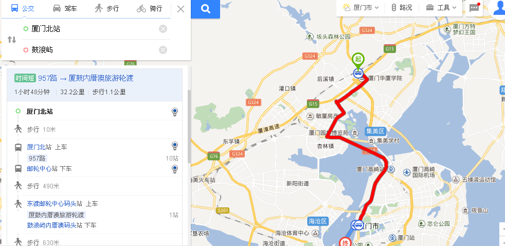 你好,可乘坐957在邮轮中心站下车,转轮渡到鼓浪屿下车即到。