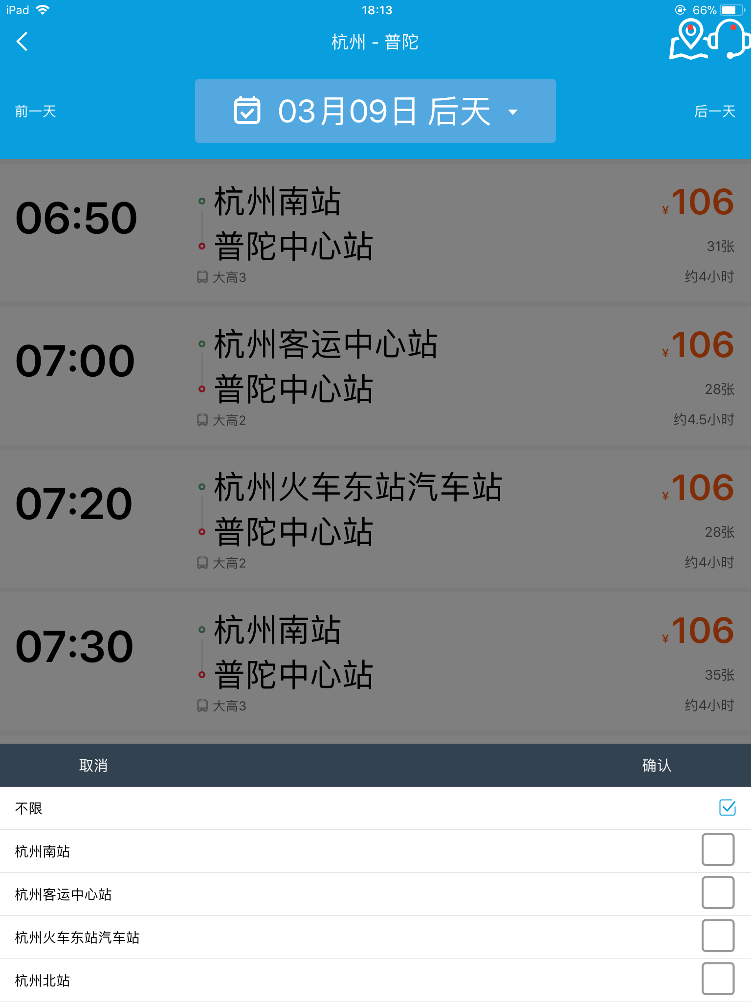 杭州南站903 08:30 高速 大高2 杭州南-普陀245 70.00 245
