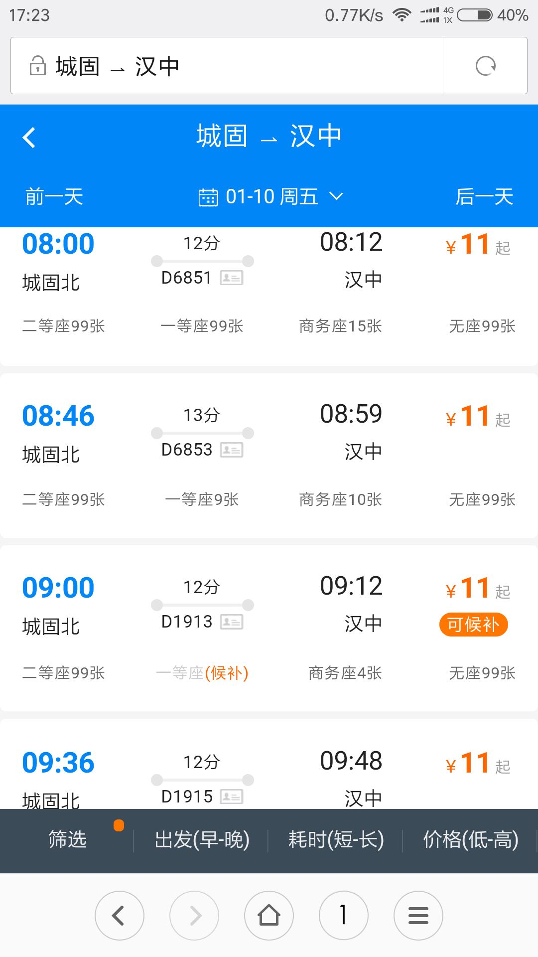 城固~汉中,每天一趟13:10,城固汽车站发车,没有桔园站发车的;高铁动车有很多趟……