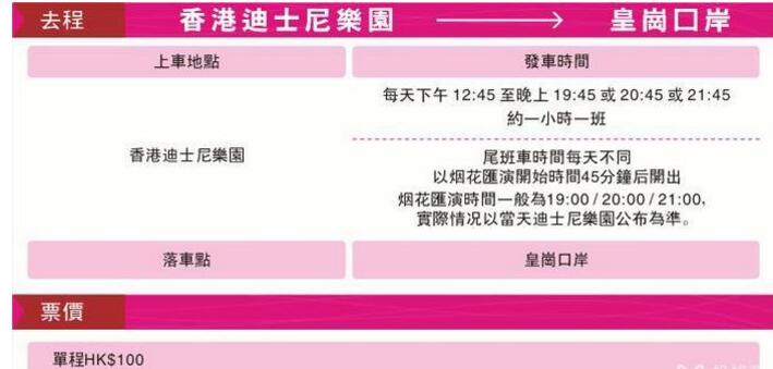 如果以上时间点,你觉得不适合你们,有可以:香港迪士尼乐园 ---乘坐跨境巴士---到皇岗口岸---乘坐深圳机场9线---直达深圳机场新航站楼(巴士运营时间见下图)