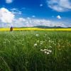 行:呼伦贝尔大草原宛如一幅巨大的画卷,无边无际,处处都是蓝天白云。一路边玩边行,成群的牛羊映入你的眼帘,蓝天、白云、绿草地、金黄的油菜花尽收眼底。