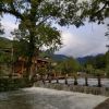 到梵净山,一路都是山区景色,要说住嘛,当然还是住在山里方便,而且环境好,推荐住在寨沙侗寨,距梵净山门不过3公里,清澈的太平河流过,河畔古树参天,一条吊桥通向寨门,鼓楼广场、踩歌堂是举办活动的场所,二层的侗族吊脚楼大都改成家庭旅馆,硬件虽比不上星级酒店,但干净整洁,平时标间的房价在100-200之间,兼餐饮供农家菜,请的是当地厨师,味道不错,统一明码标价,炒菜20-40元,面条10元左右。