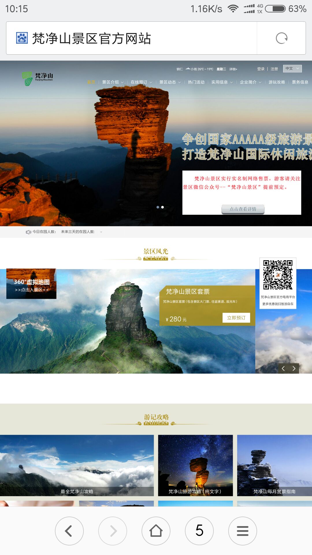2、游客可通过”梵净山生态旅游区”微信公众号提前购票。