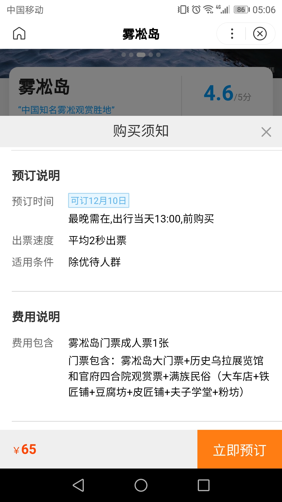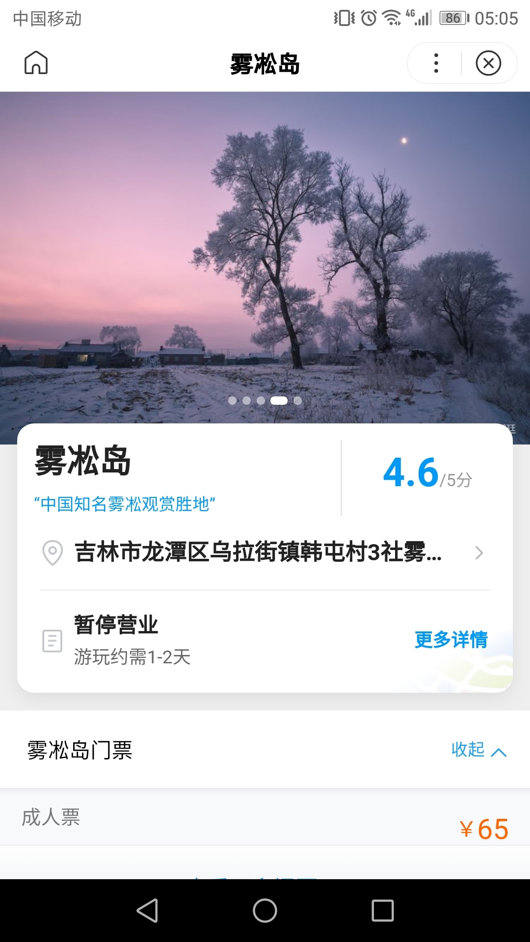 雾凇岛现在暂停营业,在网络平台上,目前可以预订12月10日起的门票。