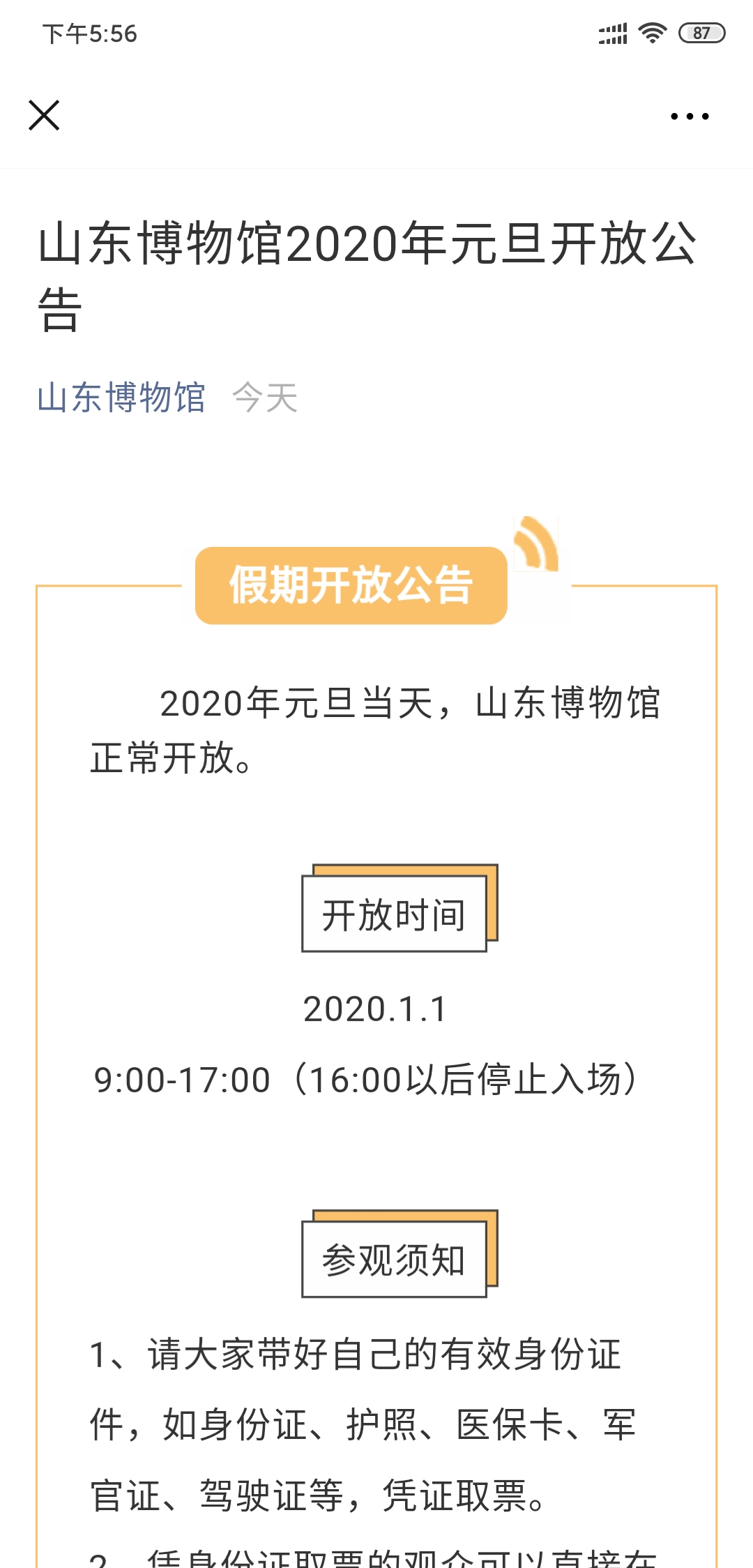你好,山东博物馆1月1日正常开放,法定节假日都是对社会开放的,过节期间不休息。