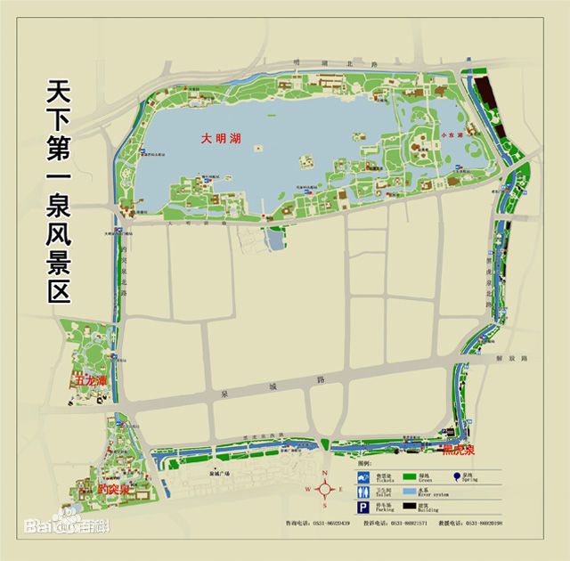 天下第一泉景区,包括大明湖,趵突泉公园,五龙潭公园,护城河公园,黑虎泉……等等。