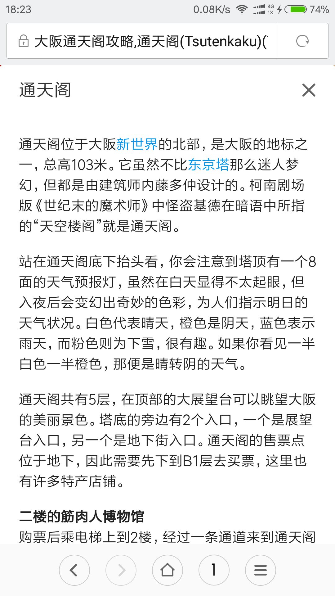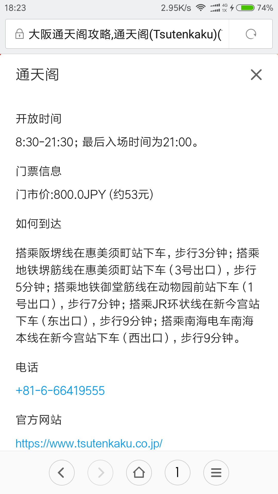 通天阁8:30-21:30开放,最后入场时间为21:00,街道不需要门票……