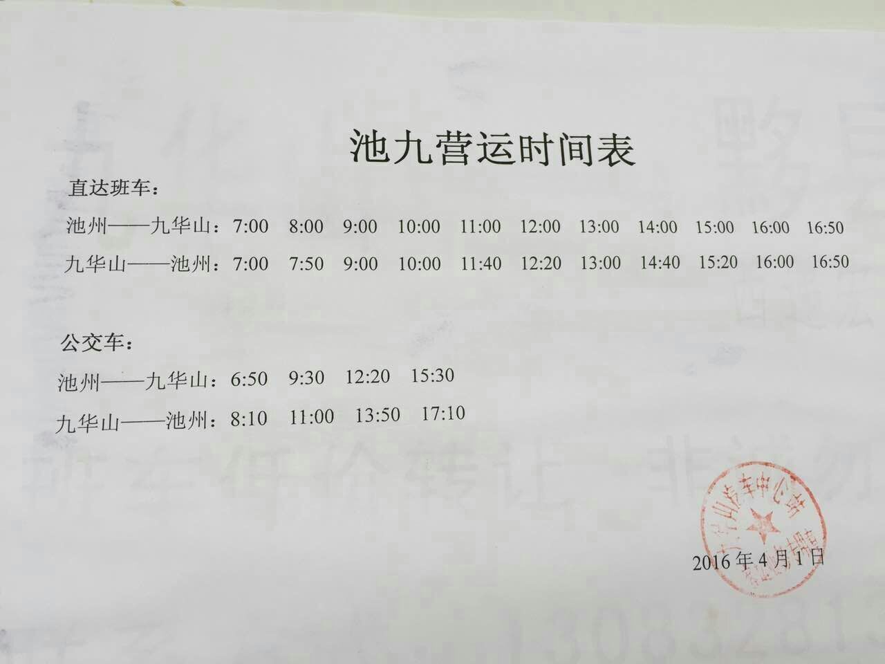 出了池州高铁站,有高铁直通车,50元含景区的往返交通票!这50块钱的交通票请务必保管好。或者池州汽车站和高铁站相毗邻,出了高铁站左转150米就是汽车站,汽车站有车直达九华山游客服务中心,其中黄色的池(池州)青(青阳)九(九华山)公交班次较少,票价是6元,用时一个小时左右,快速巴士差不多一个小时一班,用时40分钟,票价是12元。这段路程也可以包车,包车150元左右