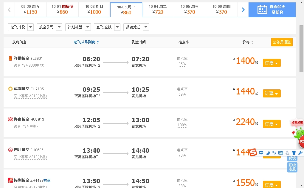 你好!欢迎到九寨沟旅行!成都到九寨沟黄龙机场的机票价格从880-1500不等,时间段不同价格不同,建议去携程网上提前预定。