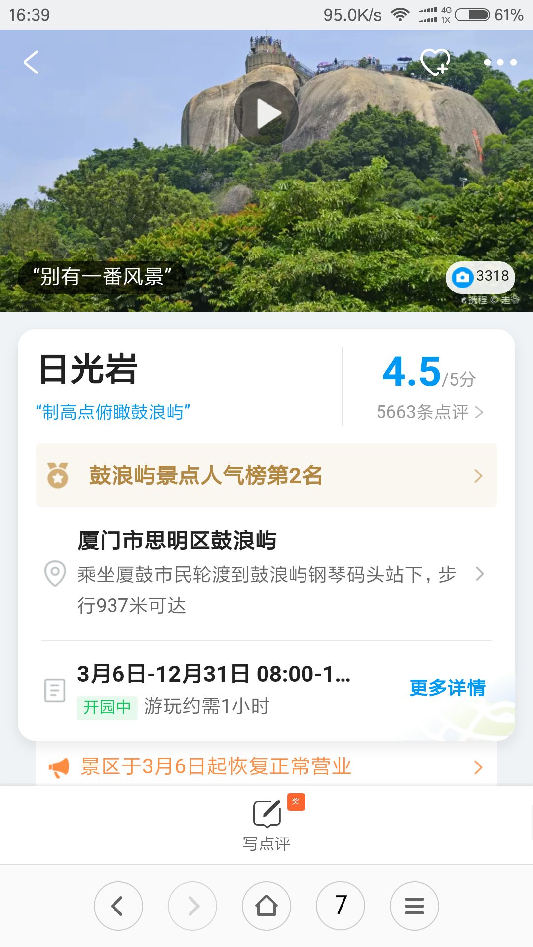 光一个日光岩的话半小时都不需要,就一块大石头,爬到顶上眺望下风景。日光岩是鼓浪屿上一个景点,玩整个鼓浪屿的话3个小时我觉得不够的