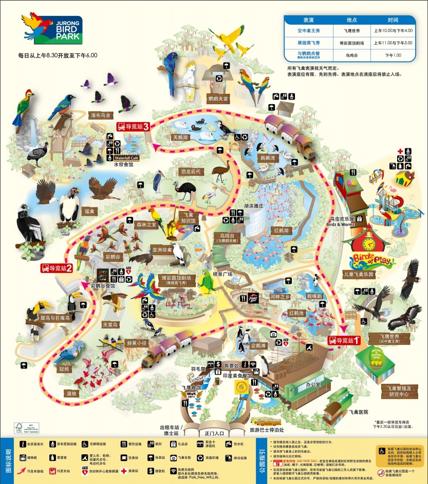 4. 飞禽公园园内小火车11月19日从早上8:30至11点停运,当天11:00分之前换票入园的,可以在换票柜台领取价值成人5新币&儿童3新币的购物券或餐券。