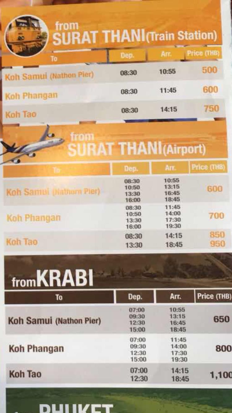 1、Lomprayah公司的车船联票(bus+ferry) 票价1100B,车船耗时7小时15分