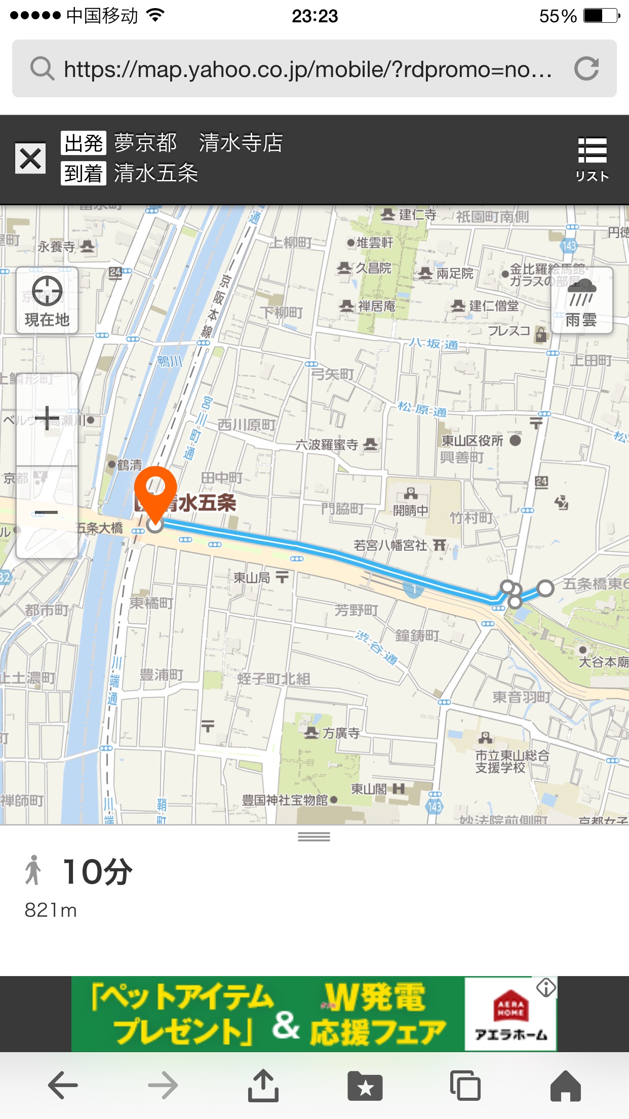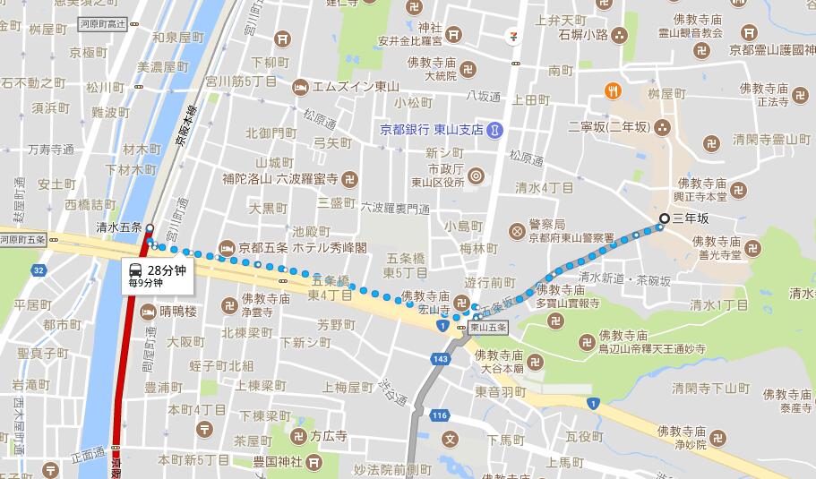 在清水寺出来后住淸水五条站方向走十分钟左右,乘京阪本线往淀屋桥方面的,四站路,十分钟就能到,附截图,希望你帮到你,祝玩的开心。