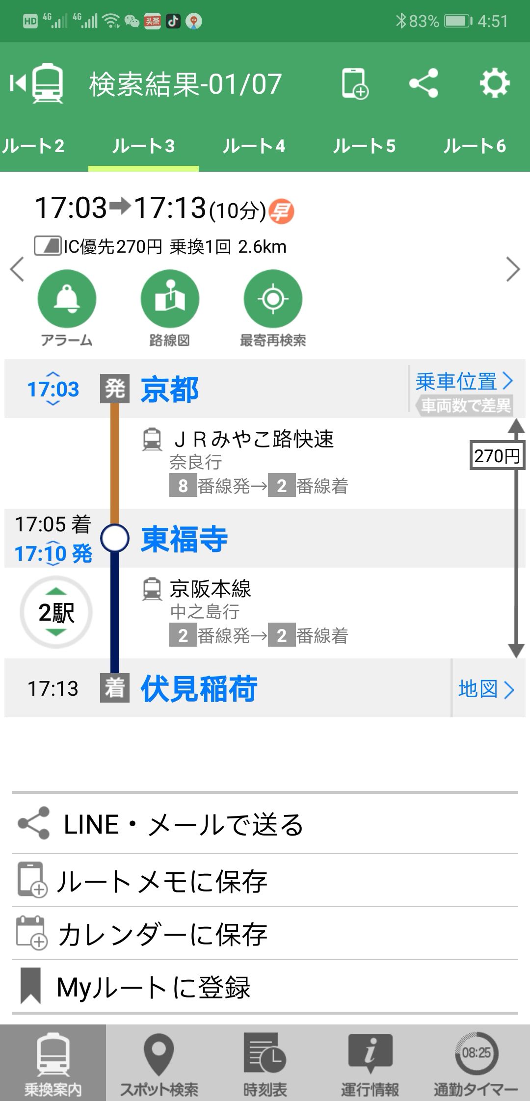 京都站到伏见稻荷大社最方便的就是在JR京都站,乘坐JR奈良线,2站路,5分钟左右,140日元,到稻荷站下车,出站就是丰臣秀吉修建的最大的千本鸟居。