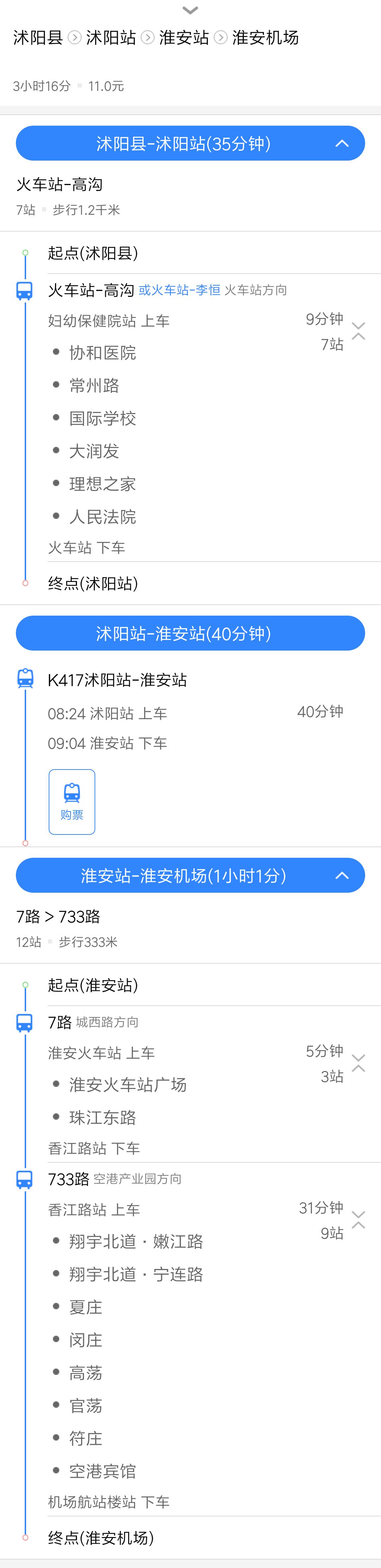 没有,沭阳县~淮安机场,60公里左右,沭阳站乘坐火车到淮安站约40分钟;淮安站乘坐7路公交,6站香江路站下;换乘733路公交,9站淮安机场站下车。