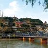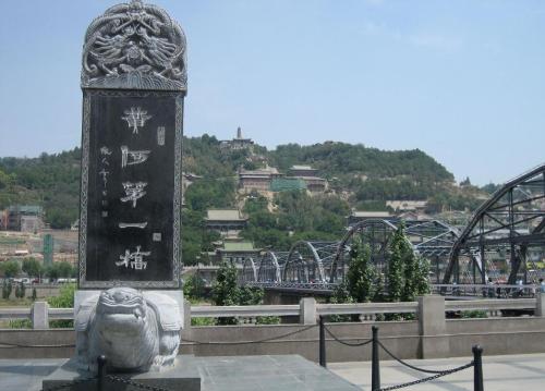黄河铁桥又名中山桥,位于兰州城北的白塔山下、金城关前,有"天下黄河第一桥"之称,是兰州市内标志性建筑之一。铁桥修建于1901年,清朝末年,是黄河之上架起的第一座常年通行桥,故有“天下第一桥”的美誉,铁桥长2百余米,宽7-8米,黑色铁架桥身,十分的端庄古朴,铁桥当年由德国建造施工,尤其是所有建设的材料,包括一个铆钉一根铁条乃至建成后刷铁桥用的油漆,都是来自德国,保证了铁桥质量使其百年依然坚固。虽遭货轮撞击,巨大洪水越桥而过,仍傲然屹立在黄河之上。