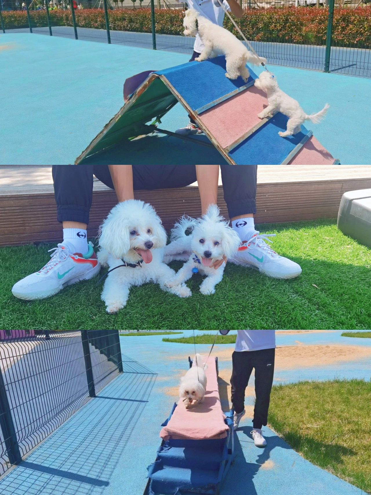 还好草坪里没有人进去,主人可以关上门解开绳让狗子们自己在草坪上疯跑一阵。不过草坪也没有之前好了,训狗设施变少了,变多了。咱就是说,好的环境是需要大家共同维护的,现在有这么一个可以让狗狗玩耍的地方,有些宠物主人不能因为这里可以随便进就不管不顾了啊,场内就有垃圾桶️捡下有那么难吗...