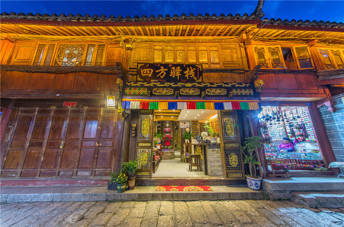 住宿推荐丽江四方驿栈,位于大研古镇中心四方街边现文巷内八十米处,站在门口就看着四方街,离酒吧街2分钟。全部纳西族式的木式建筑,洁净幽雅,邻近热闹却又安静,中间庭园长期供应阳光、时间、好心情。