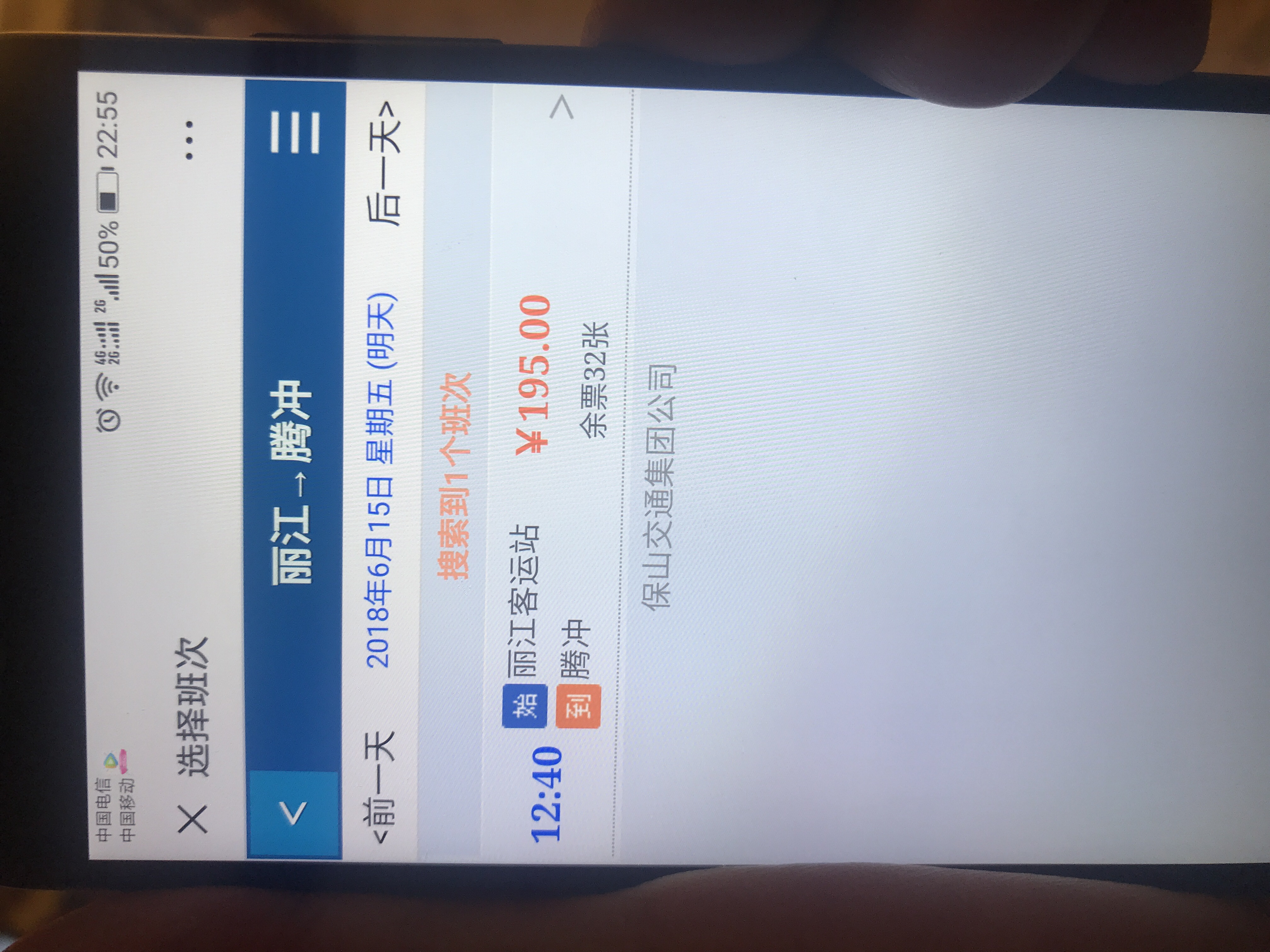 丽江客运站有去腾冲的车,每天只有一班,9小时,12:40 开,195元。
