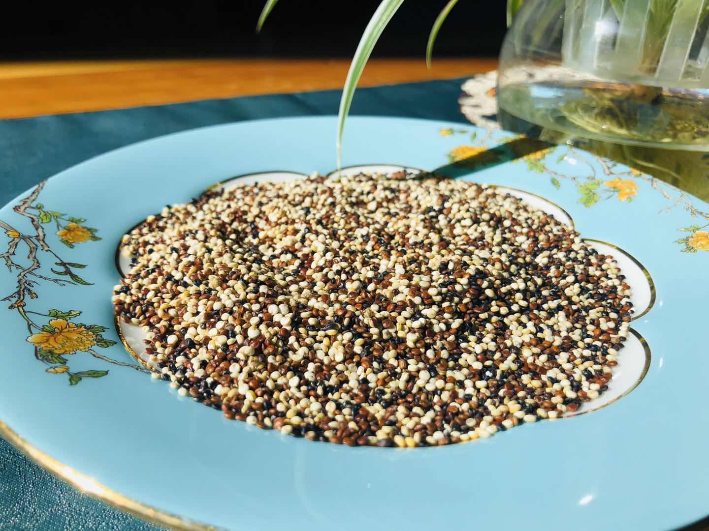 4、可制成藜麦茶:将藜麦炒熟呈金黄色,在杯里放入1~2勺,用60℃~80℃开水冲泡饮用。