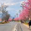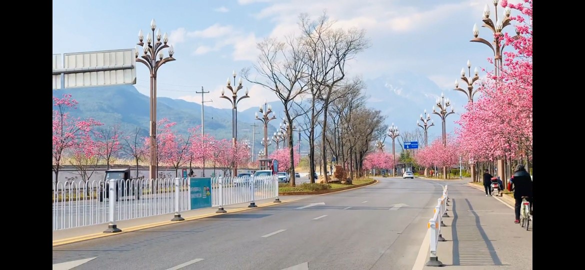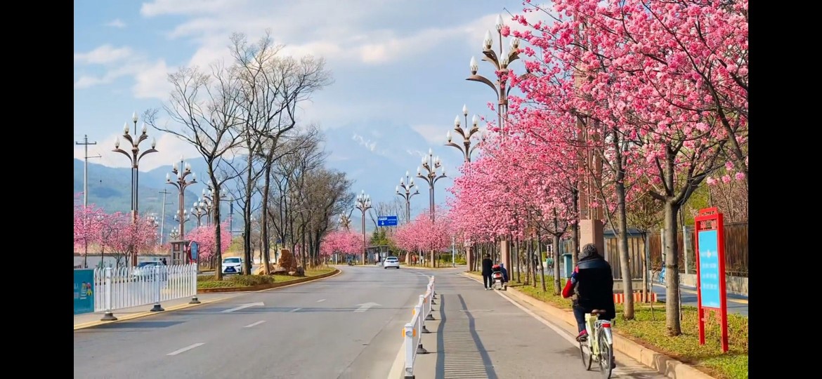 好玩啊!樱花大道在丽江古城区清溪路,道路两边都是樱花树。