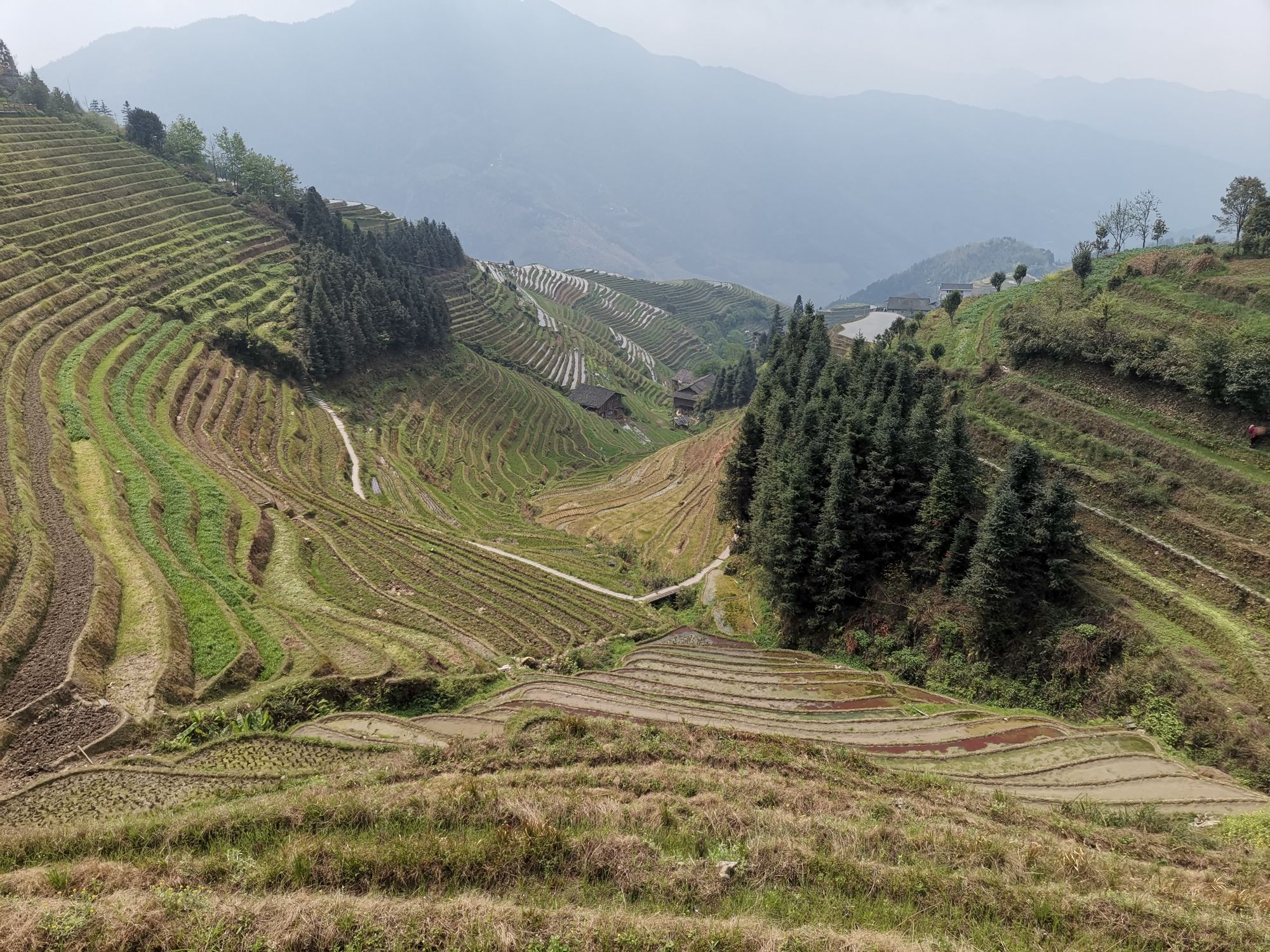 梯田最好的时候是放水,现在没有水,但是可以看见很多绿色的田地。如果可能最好等放水再去