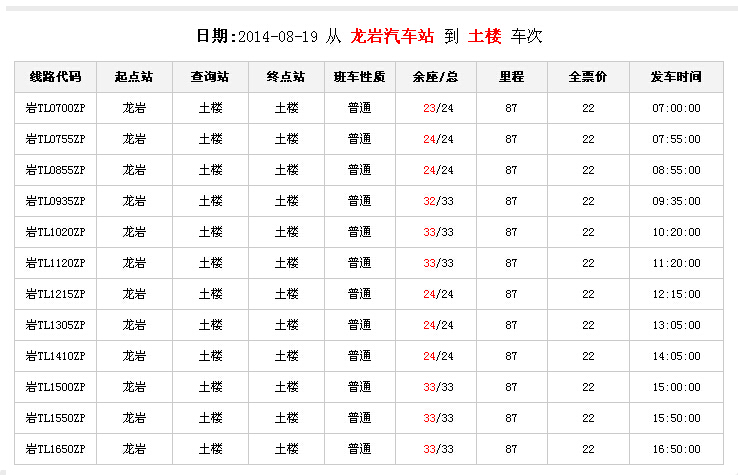 3:龙岩到洪坑土楼发车时间07:00:00 07:55:00 08:55:00 09:35:00 10:20:00 11:20:00 12:15:00 13:05:00 14:05:00 15:00:00 15:50:00 16:50:00