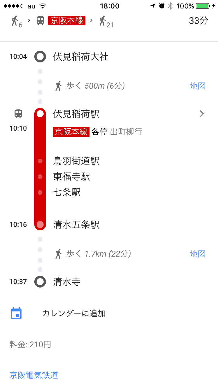 清水寺离公交站较远,您从伏见稻荷大社出来坐JR返回到京都站,再换206(或100)巴士到清水道下车,步行至清水寺,步行距离远点