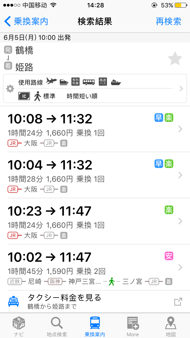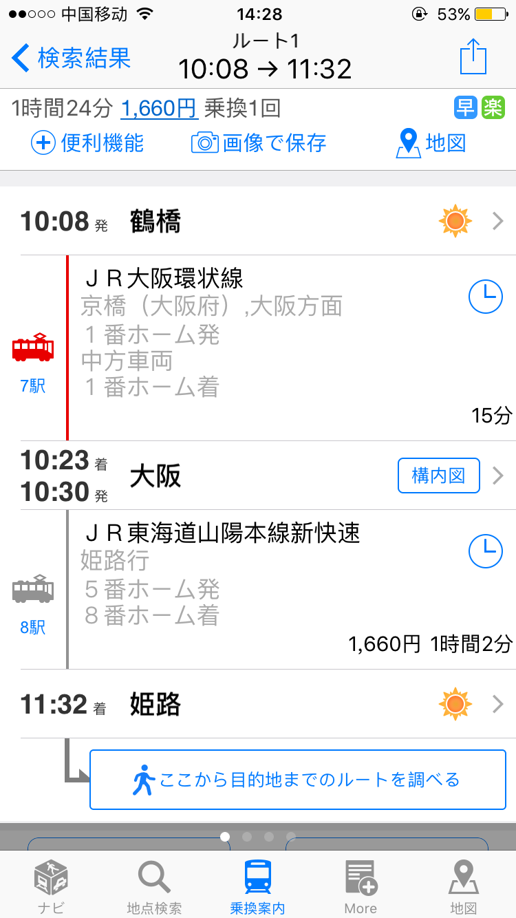 从鹤桥附近去姬路城的话,可以先坐大阪环状线到大阪站,再转山阳本线可到姬路城,用时大约1个半小时,景点游览大概也就一两个小时可以搞定。因为姬路城已经不在大阪府的范围了,因此无法使用大阪周游券,在大阪市内周游券也无法利用JR线路,如果想要节约一点路费的话,可以利用周游券从鹤桥坐大阪地铁千日前线转御堂筋线至梅田即大阪站。