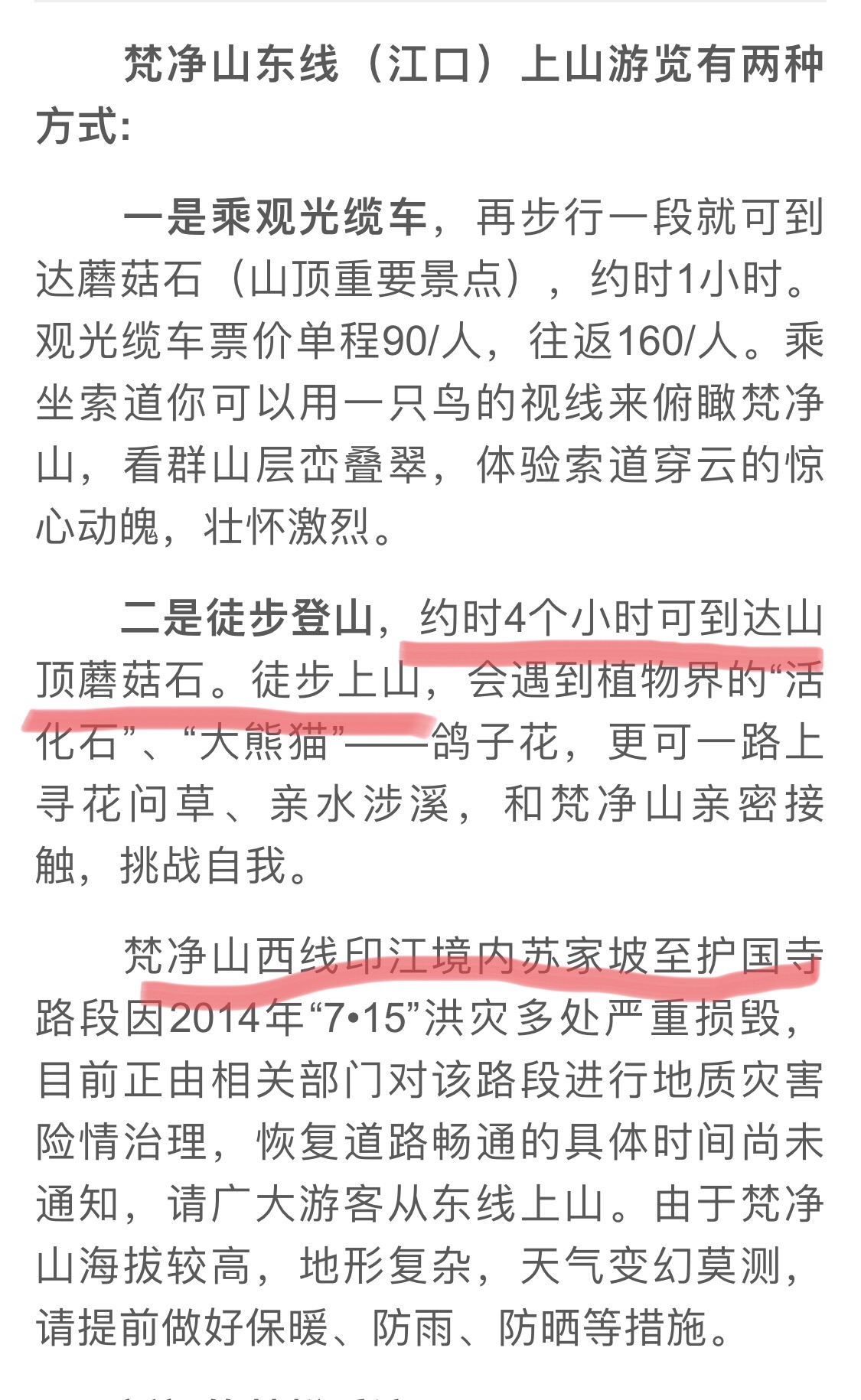 3、如果选择全程徒步的话,注意体力的支配,由于需要爬山大约五个小时,爬山之前一定要补充好食物。