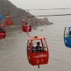 田横山的索道最多可以坐两个人,你要是就一个人,也可以自己坐一个,详见图片,