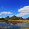 我去年春节去的,池塘里的花草枯黄,陆地上绿色也少一点。但是游客少而且山水之间也还是很美的